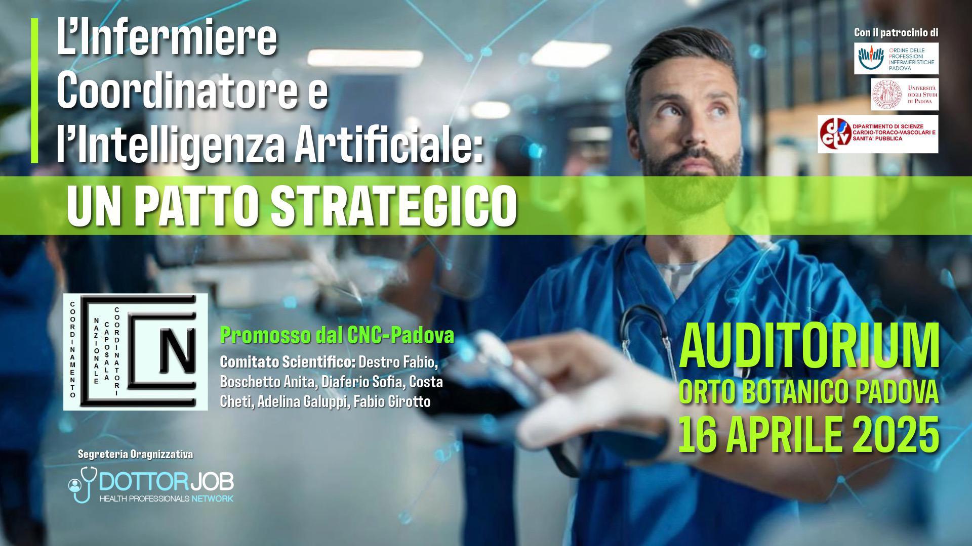Si è tenuto con grande successo il convegno "L'infermiere coordinatore e l'intelligenza artificiale: un patto strategico", organizzato dal CNC Padova in collaborazione con Dottor Job presso l'Auditorium Orto Botanico di Padova. L'evento ha richiamato numerosi professionisti del settore sanitario, animati dal desiderio di esplorare le potenzialità e le sfide legate all'integrazione dell'Intelligenza Artificiale (IA) nella pratica infermieristica.